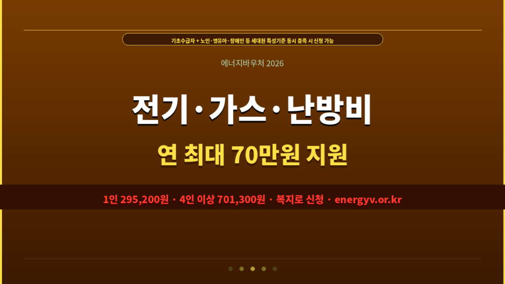 에너지바우처 전기·가스·난방비 등 에너지 요금에 사용 가능한 이용권 · 현금 아닌 요금 차감 방식 4인 이상 가구 최대 701,300원 ·