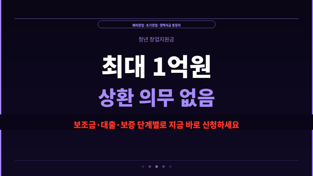정부는 청년 창업자에게 최대 1억원 사업화 자금을 상환 의무 없이 지원합니다 예비창업패키지 · 청년창업사관학교 · 초기창업패키지 · 정책자금 대출 신청처: