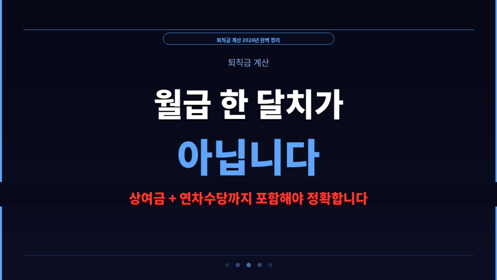 퇴직금 계산 공식은 1일 평균임금 × 30일 × (재직일수 ÷ 365) 지급 조건: 1년 이상 계속 근무 + 주 15시간